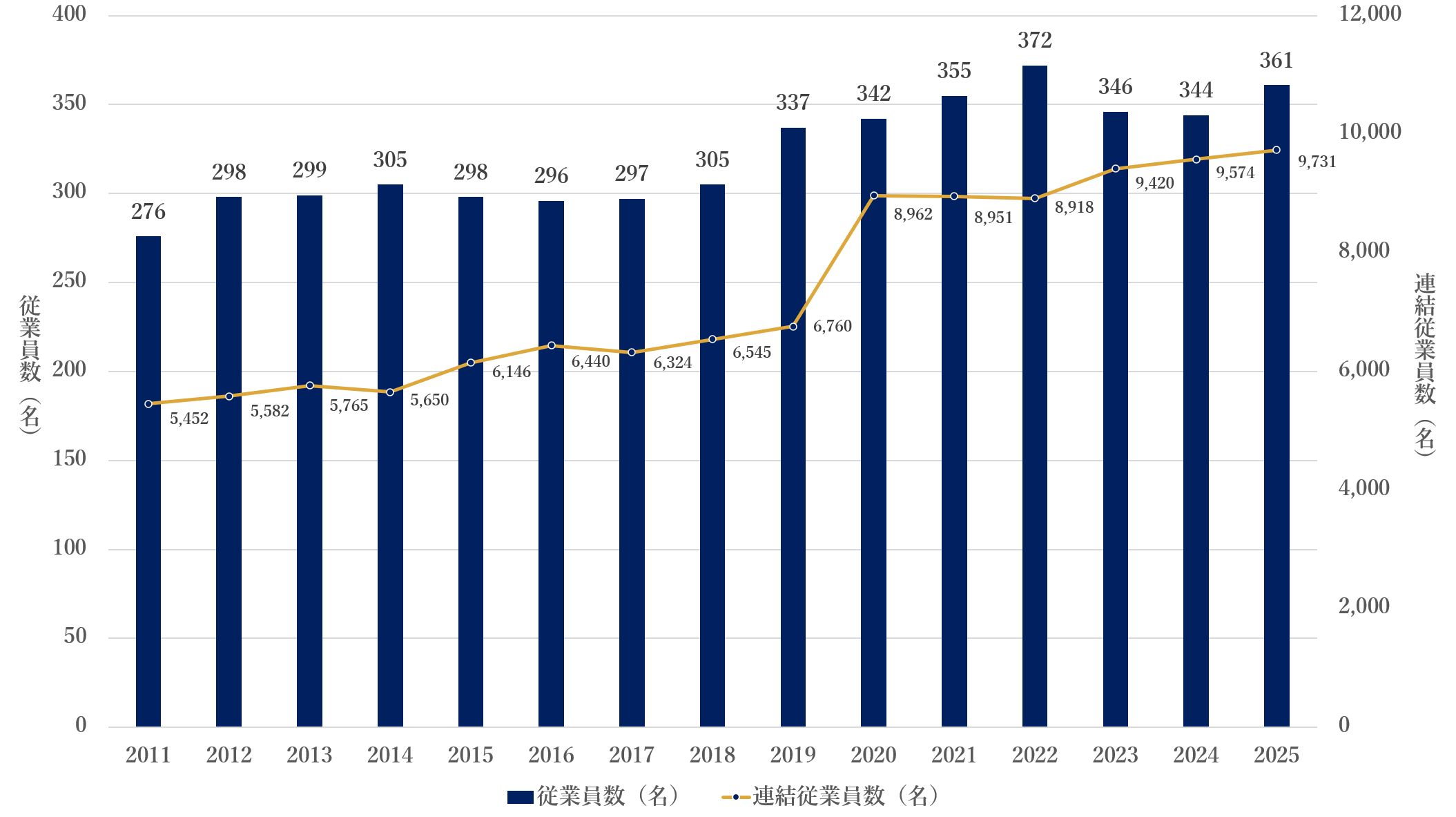 ※従業員数は就業人員数であり、臨時従業員数は[ ]内に年間の平均人員を外数で記載しております。